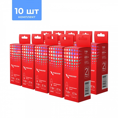 Лампа светодиодная Триколор LED C37 7Вт 3000K E14 Комплект 10 шт