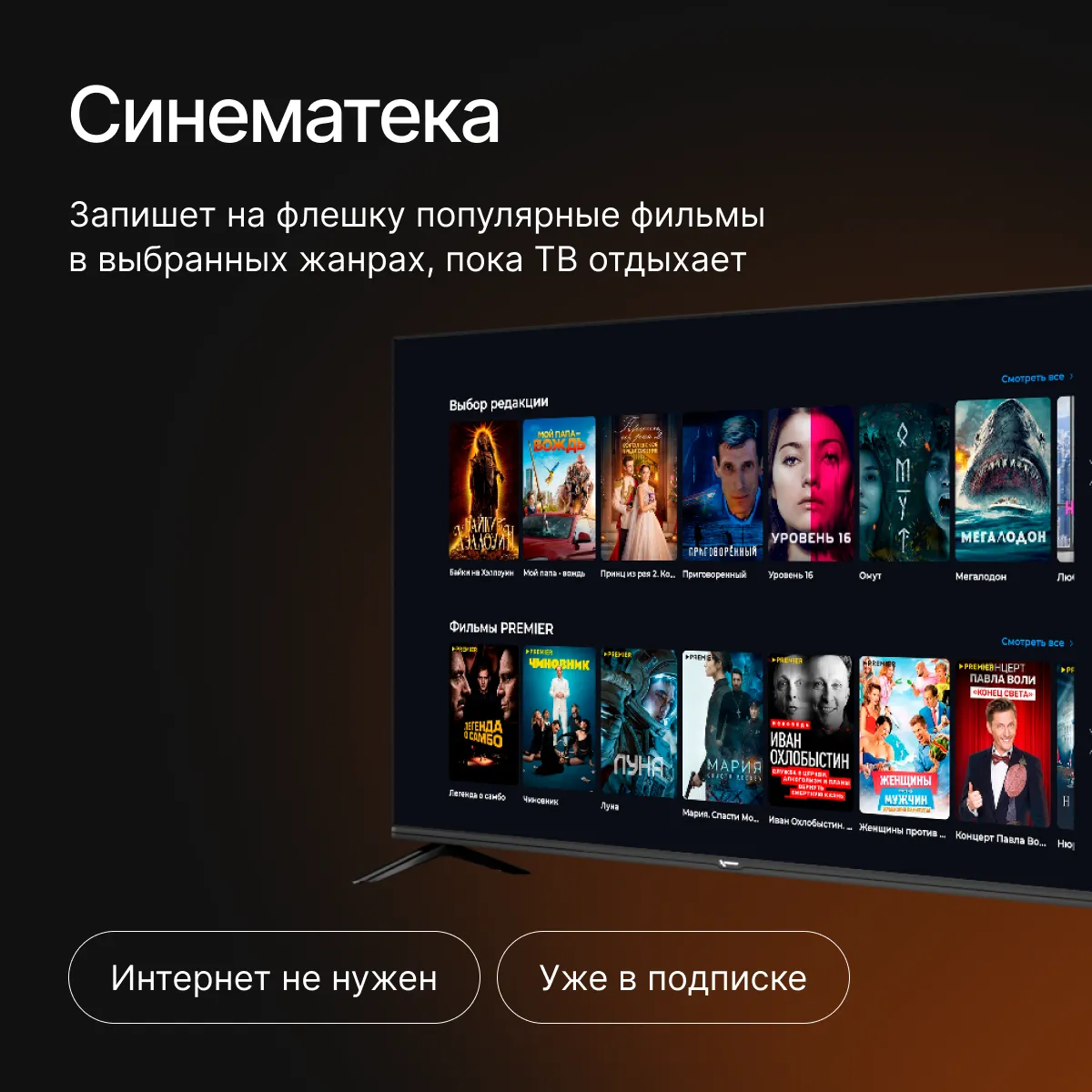 Просмотр без интернета. Смотрите любимые фильмы, новости и передачи там,
